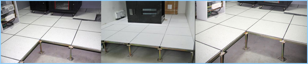 These panels are strong modular panels of size 600mmx600mm, made of 2 layers of steel, with the hollow core filled with cementitious material. The steel plates are spot welded at more than 50 points. The top layer has an antistatic decorative laminate, whereas the bottom is epoxy powder coated. The edges of the tiles are sealed with PVC edge beading. The tiles perfectly sit on a steel pipe structure which is fitted on an adjustable jack placed at every 600mm center to center. lt is possible to have access floors from 150mm to 1200mm height depending upon customer requirements.